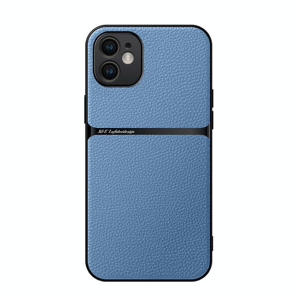 For iPhone 12 Litchi Leather Magnetic Full Coverage Shockproof Phone Case(Blue)