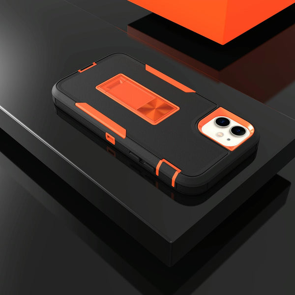 For iPhone 12 Magnetic Holder Phone Case(Black + Orange)