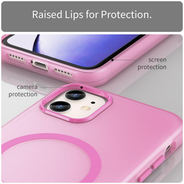 For iPhone 12 MagSafe Frosted Translucent TPU + PC Full Coverage Phone Case(Pink)