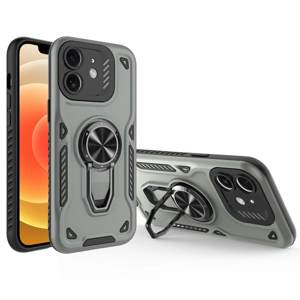 For iPhone 12 Metal Rotating Bracket TPU + PC Magnetic Phone Case(Carbon Grey)
