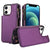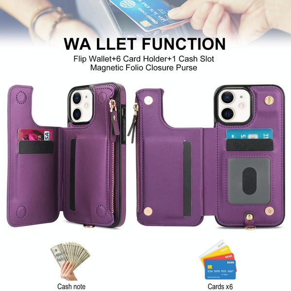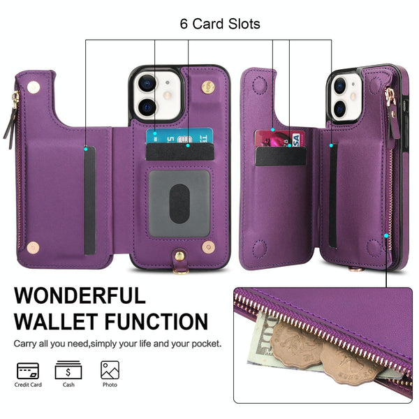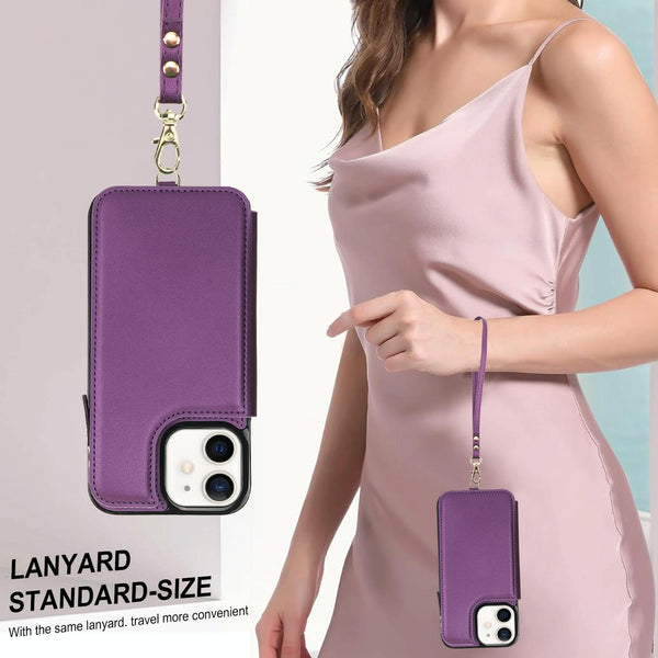 For iPhone 12 mini Double Flap Zipper RFID Leather Phone Case with Short Lanyard(Dark Purple)