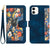 For iPhone 12 mini Floral Pattern Leather Phone Case with Lanyard(Dark Blue)