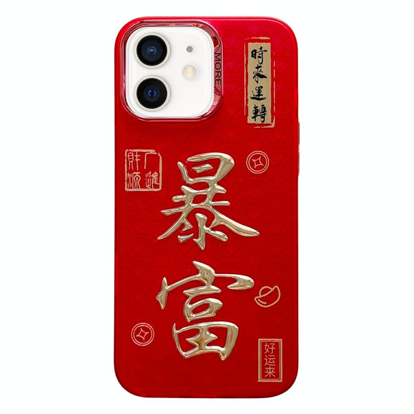 For iPhone 12 New Year Design 3D Gold Stamping IMD Phone Case(Wealthy)