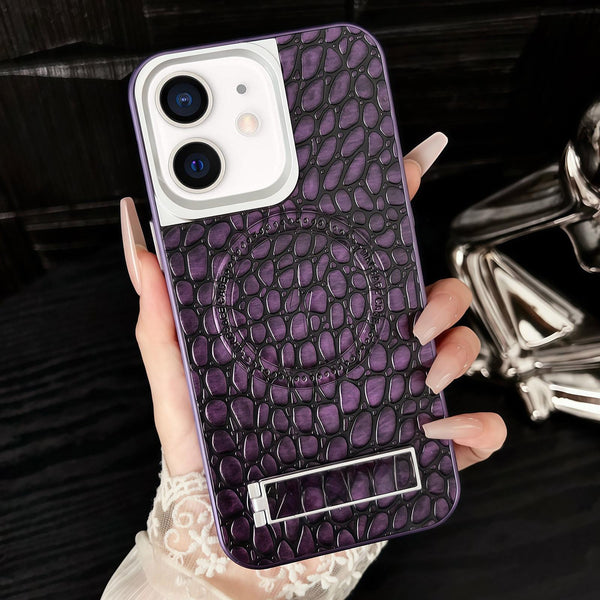 For iPhone 12 Pebble Pattern PU MagSafe Phone Case with Holder(Purple)