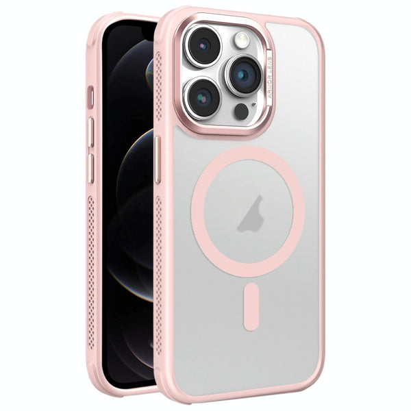 For iPhone 12 Pro Hardware Side Cooling Skin Feel Frosted Metal Lens Frame MagSafe Phone Case(Pink)