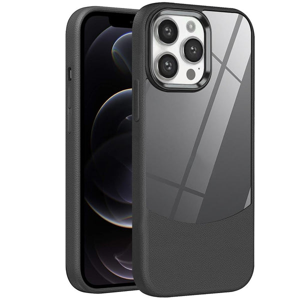 For iPhone 12 Pro Litchi Texture TPU Hybrid Acrylic Phone Case(Black)