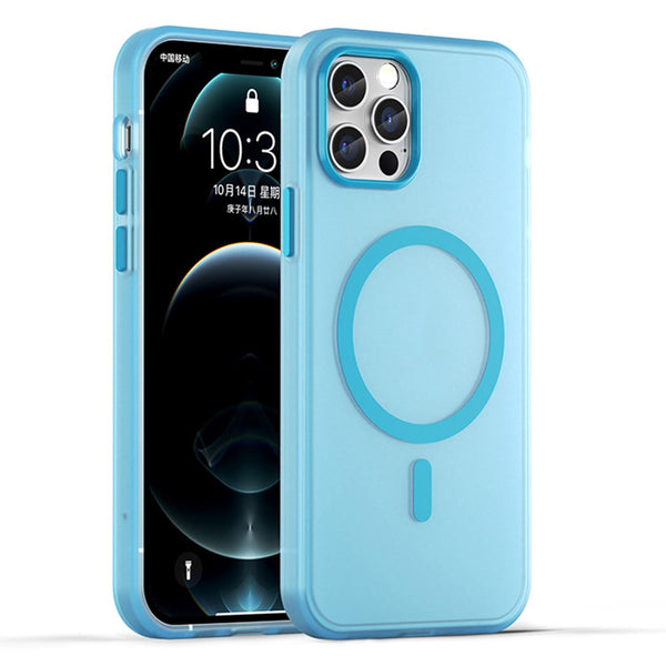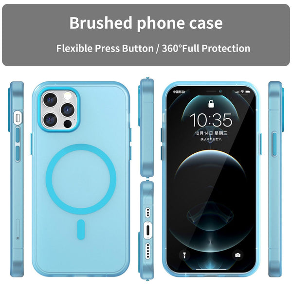 For iPhone 12 Pro MagSafe Frosted Translucent TPU + PC Full Coverage Phone Case(Blue)