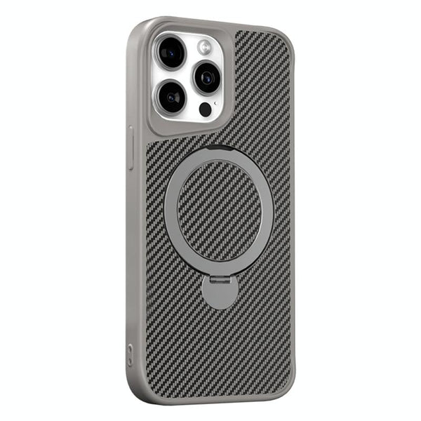 For iPhone 12 Pro Max Carbon Fiber Texture 360 MagSafe Holder Phone Case(Titanium Gray)