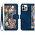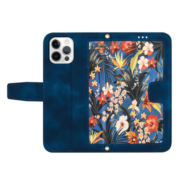 For iPhone 12 Pro Max Floral Pattern Leather Phone Case with Lanyard(Dark Blue)