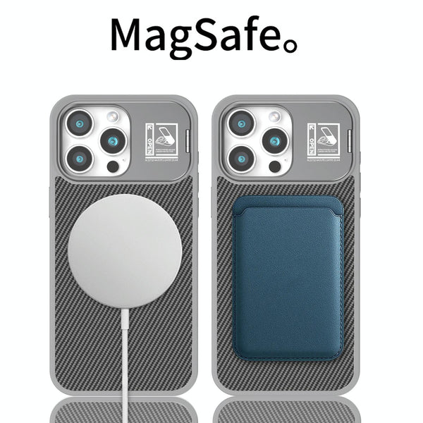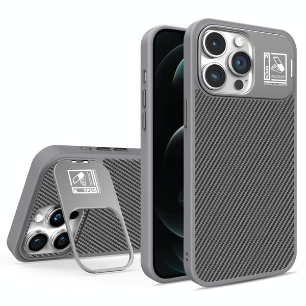 For iPhone 12 Pro Max Folding Holder Carbon Fiber MagSafe Phone Case(Grey)