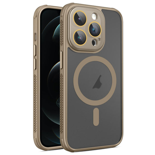 For iPhone 12 Pro Max Hardware Side Cooling Skin Feel Frosted MagSafe Magnetic Phone Case with Lens Film(Gold)