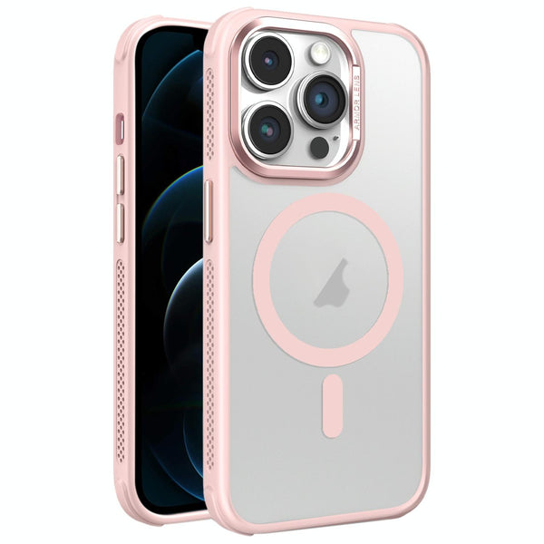 For iPhone 12 Pro Max Hardware Side Cooling Skin Feel Frosted Metal Lens Frame MagSafe Phone Case(Pink)