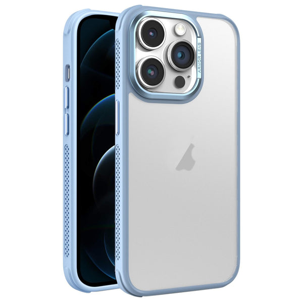 For iPhone 12 Pro Max Hardware Side Cooling Skin Feel Frosted Metal Lens Frame Phone Case(Sky Blue)
