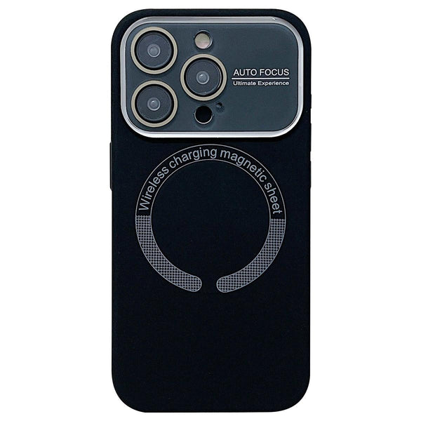 For iPhone 12 Pro Max Large Window Acrylic Glass Lens MagSafe Silicone Phone Case(Black)