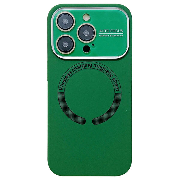 For iPhone 12 Pro Max Large Window Acrylic Glass Lens MagSafe Silicone Phone Case(Dark Green)