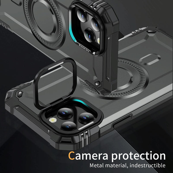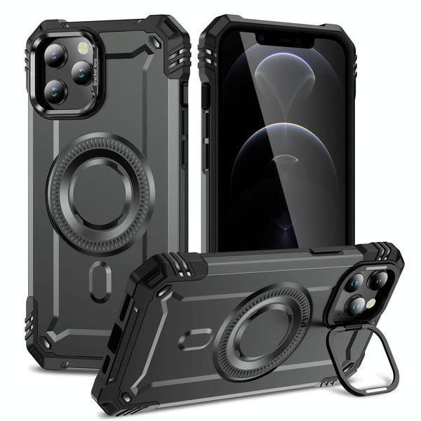 For iPhone 12 Pro Max Lens Holder MagSafe Phone Case(Grey)