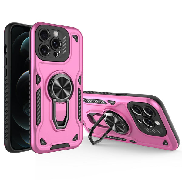 For iPhone 12 Pro Max Metal Rotating Bracket TPU + PC Magnetic Phone Case(Pink Purple)