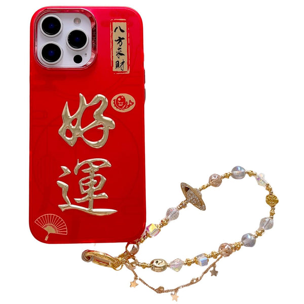 For iPhone 12 Pro Max New Year Design 3D Gold Stamping IMD Phone Case with Crystal Chain(Good Luck)