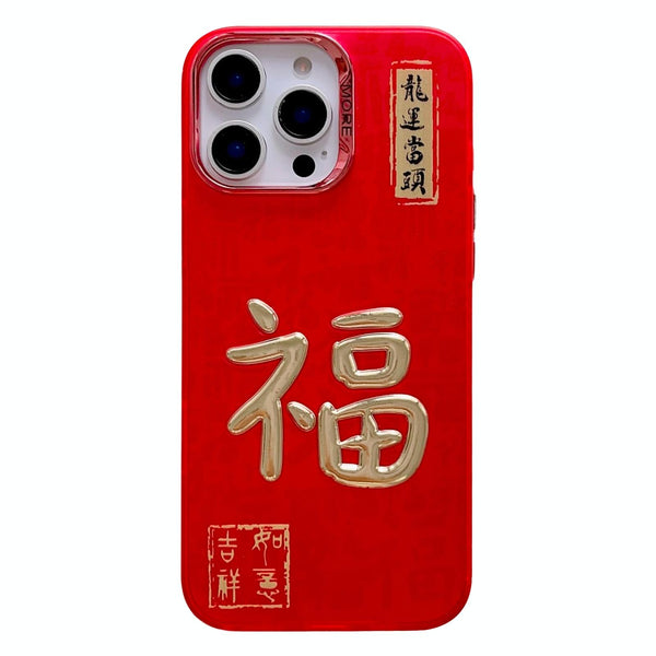For iPhone 12 Pro Max New Year Design 3D Gold Stamping IMD Phone Case(Blessing)