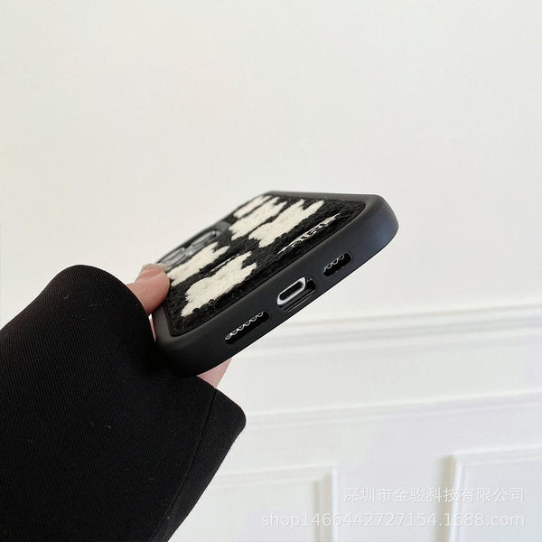 For iPhone 12 Pro Max Rabbit Plush Silicone Phone Case(Black)