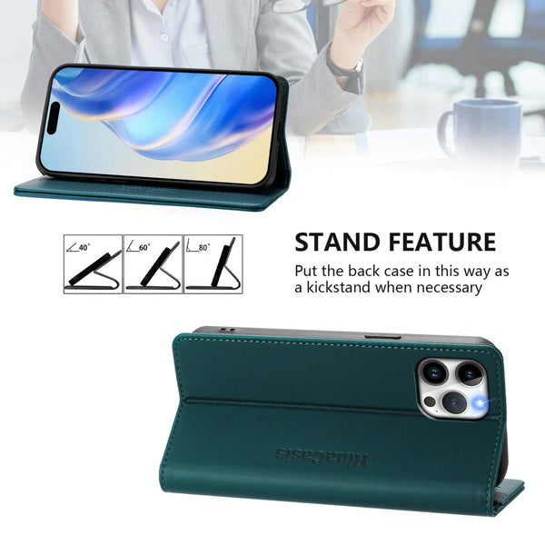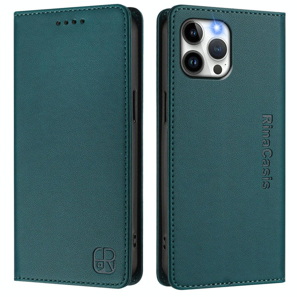 For iPhone 12 Pro Max RC01 Dual-Folded Magnetic Suction RFID Leather Phone Case(Dark Green)