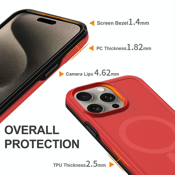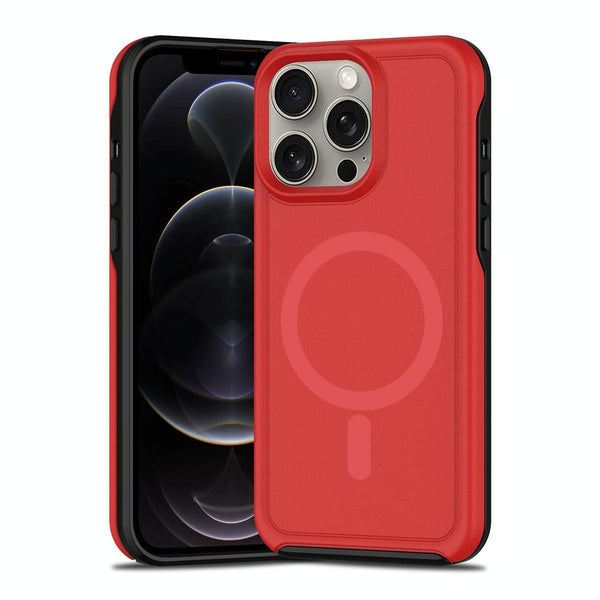 For iPhone 12 Pro Max Shockproof MagSafe Armor PC Hybrid TPU Phone Case(Red+Black)