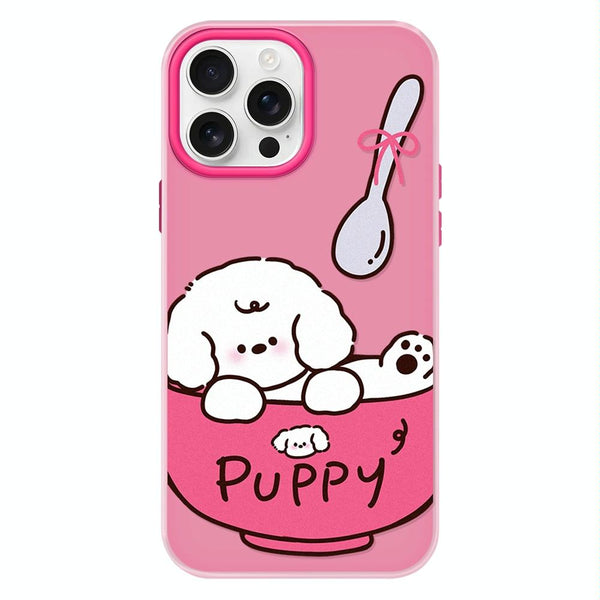 For iPhone 12 Pro Max Skin Feeling Jelly TPU Hybrid PC Phone Case(A Bowl of Puppy Pink)