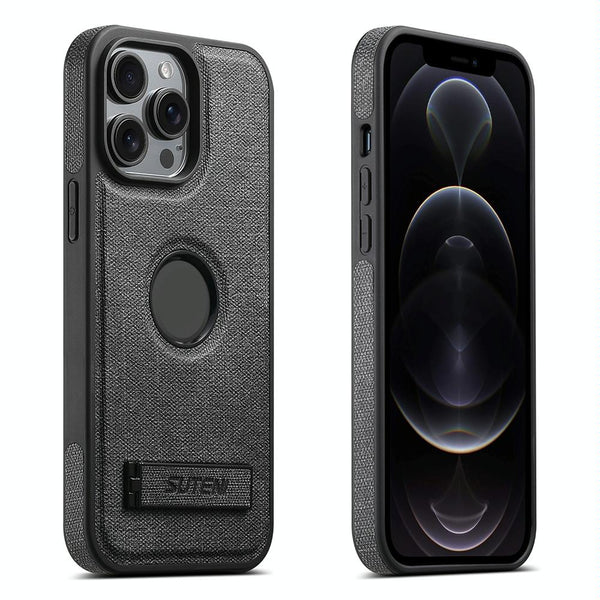 For iPhone 12 Pro Max Suteni G2 Holder Denim Leather Back MagSafe Phone Case(Black)