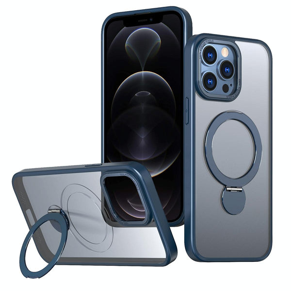 For iPhone 12 Pro Max Wing Series Gen2 MagSafe Metal Ring Holder Phone Case(Blue)