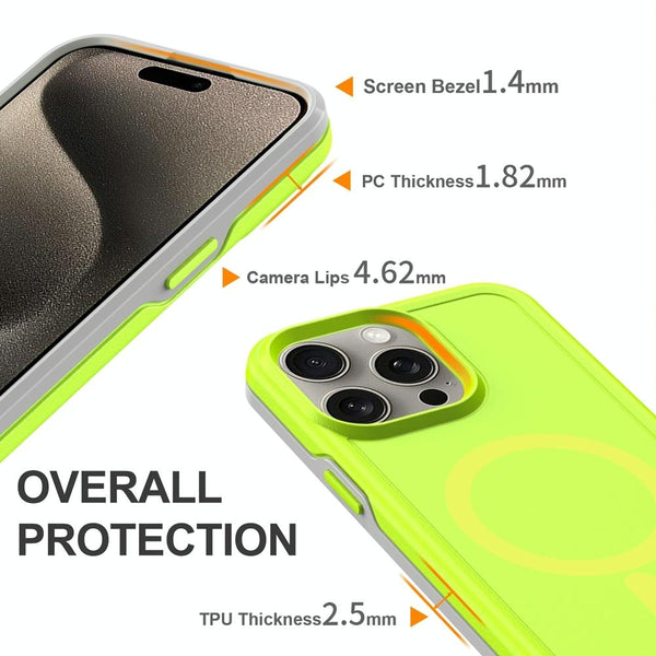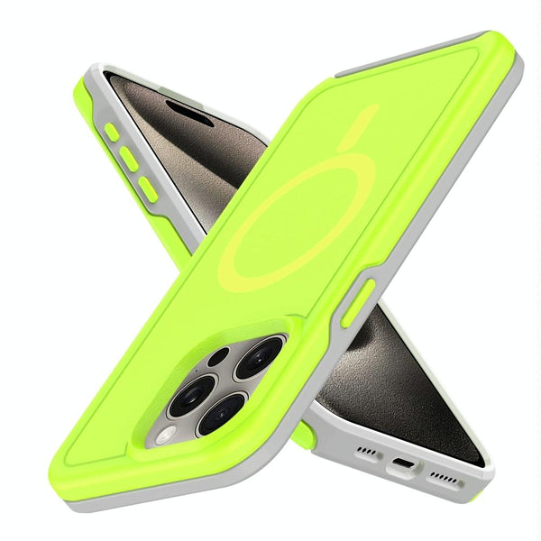 For iPhone 12 Pro Shockproof MagSafe Armor PC Hybrid TPU Phone Case(Fluorescent Green+Gray)