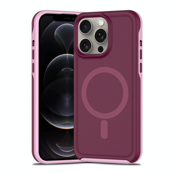 For iPhone 12 Pro Shockproof MagSafe Armor PC Hybrid TPU Phone Case(Wine Red+Light Pink)