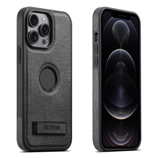 For iPhone 12 Pro Suteni G2 Holder Denim Leather Back MagSafe Phone Case(Black)