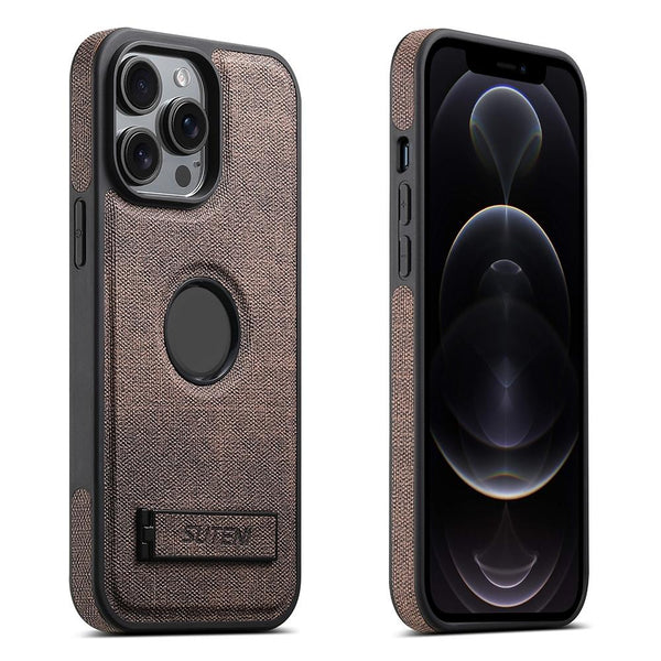For iPhone 12 Pro Suteni G2 Holder Denim Leather Back MagSafe Phone Case(Brown)