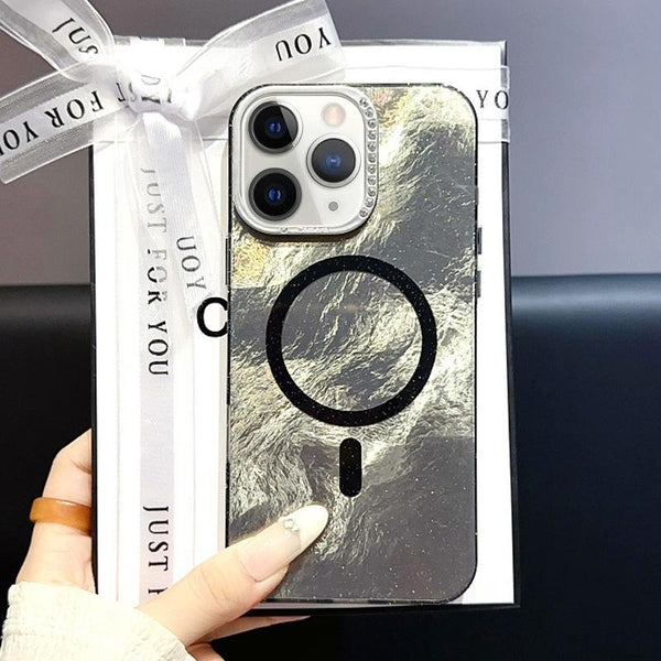 For iPhone 12 Pro Tinfoil Texture MagSafe PC Phone Case(Black)