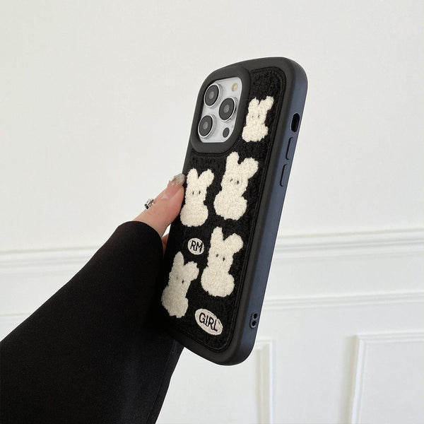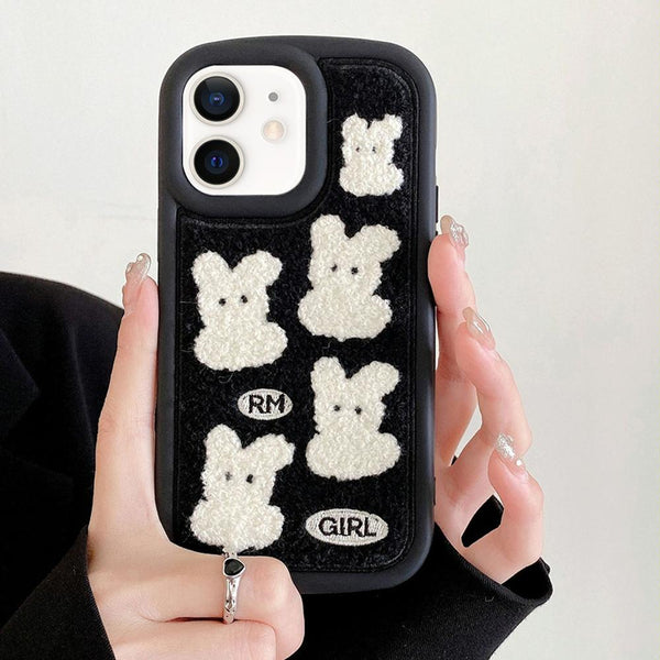 For iPhone 12 Rabbit Plush Silicone Phone Case(Black)