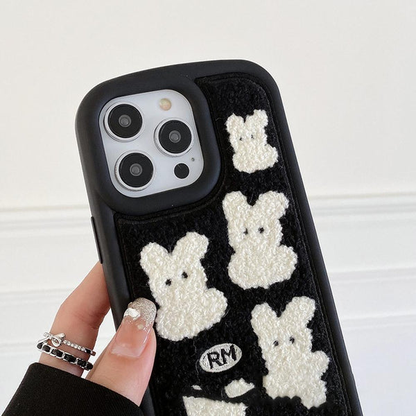 For iPhone 12 Rabbit Plush Silicone Phone Case(White)