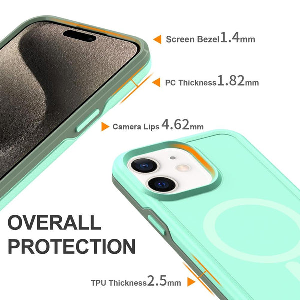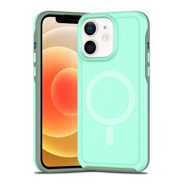 For iPhone 12 Shockproof MagSafe Armor PC Hybrid TPU Phone Case(Mint Green+Grayish Green)