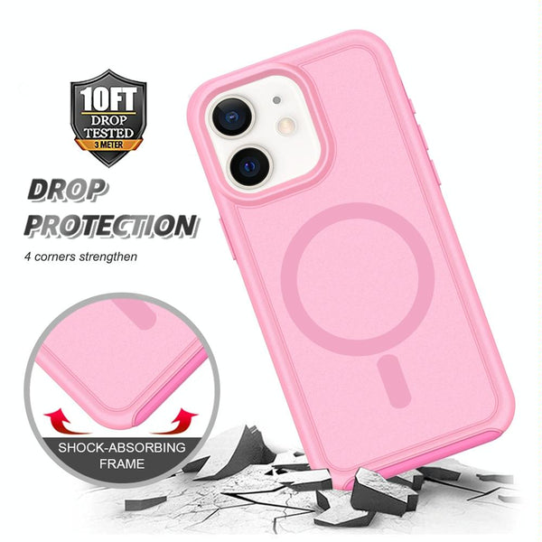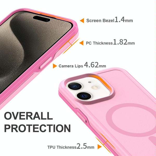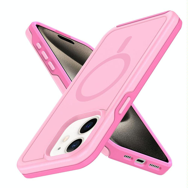 For iPhone 12 Shockproof MagSafe Armor PC Hybrid TPU Phone Case(Purple Pink)