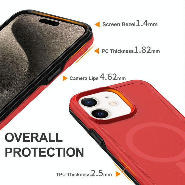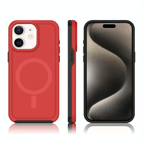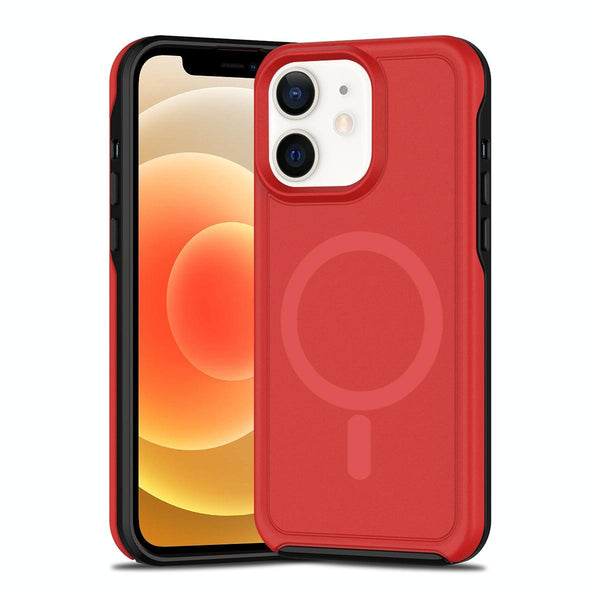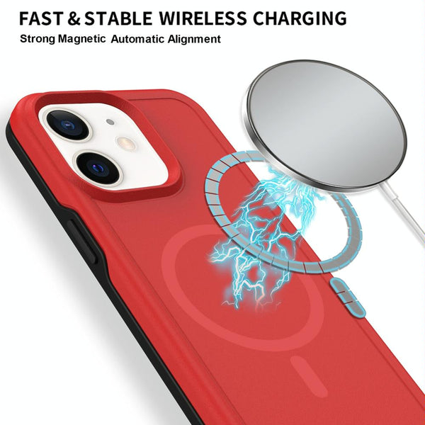 For iPhone 12 Shockproof MagSafe Armor PC Hybrid TPU Phone Case(Red+Black)
