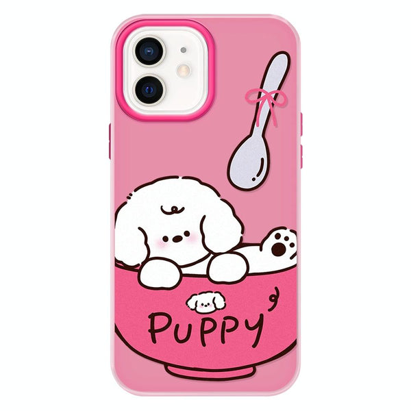 For iPhone 12 Skin Feeling Jelly TPU Hybrid PC Phone Case(A Bowl of Puppy Pink)