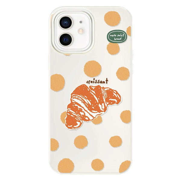 For iPhone 12 Skin Feeling Jelly TPU Hybrid PC Phone Case(Polka Dot Croissant White)