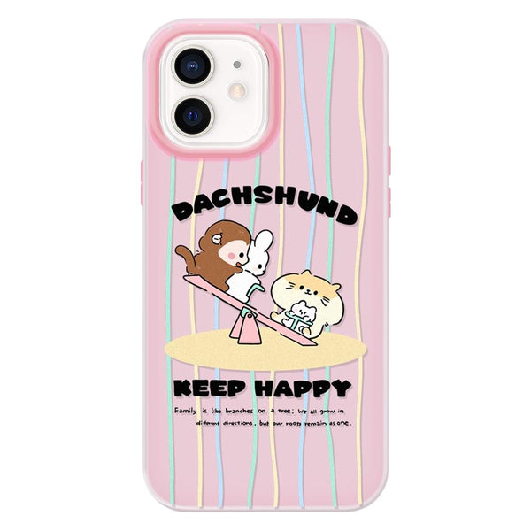 For iPhone 12 Skin Feeling Jelly TPU Hybrid PC Phone Case(Seesaw Animal Pink)