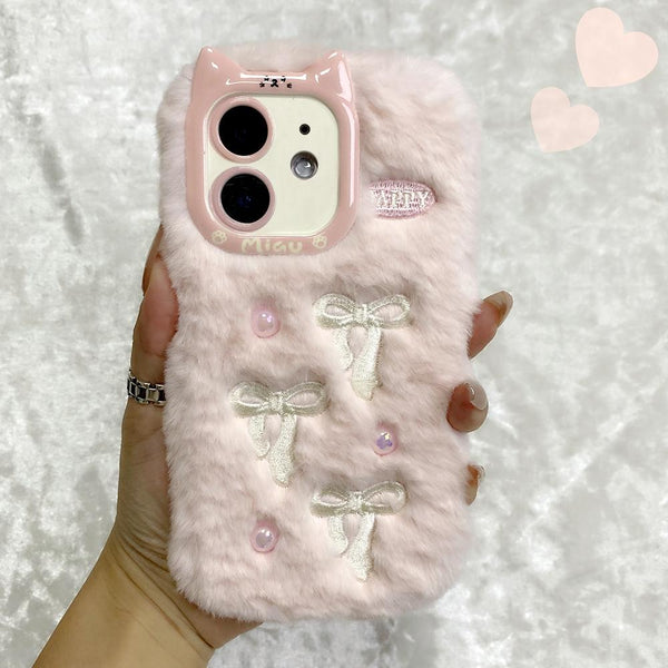 For iPhone 12 Snake Embroidery Plush Silicone Phone Case(Bowknot And Pink)