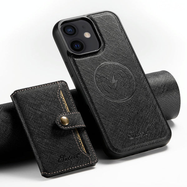 For iPhone 12 Suteni H20 Cross-Grain MagSafe Horizontal Card Bag Back Phone Case(Black)