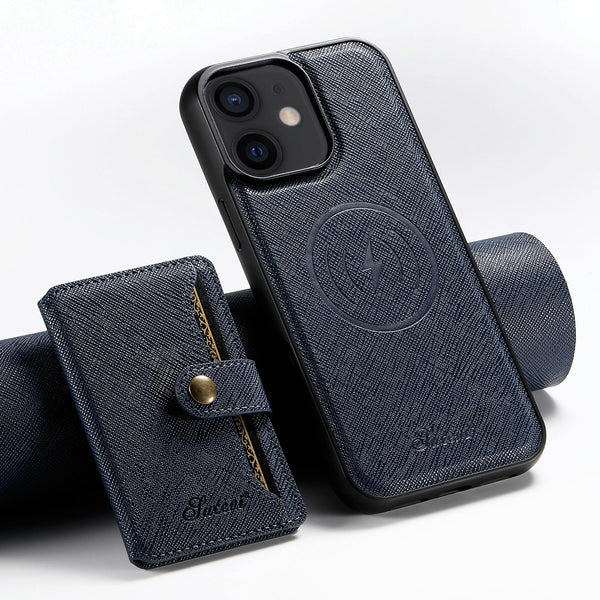 For iPhone 12 Suteni H20 Cross-Grain MagSafe Horizontal Card Bag Back Phone Case(Blue)