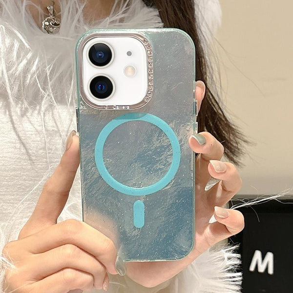 For iPhone 12 Tinfoil Texture MagSafe PC Phone Case(Blue)