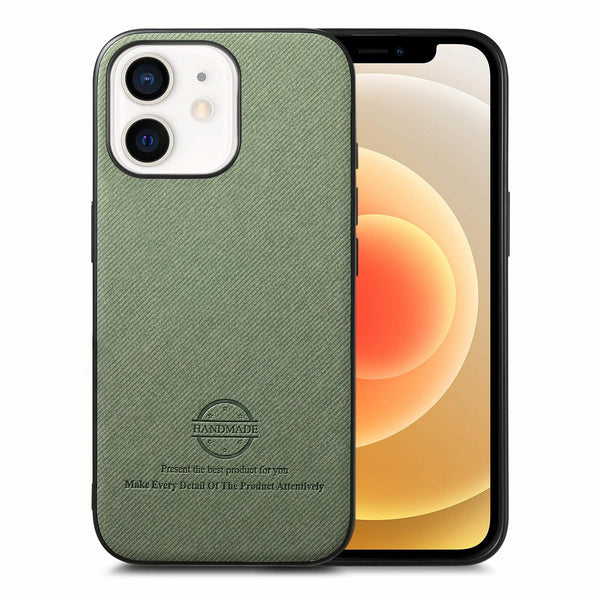For iPhone 12 Twill Fabric Leather Skin Back Phone Case(Green)