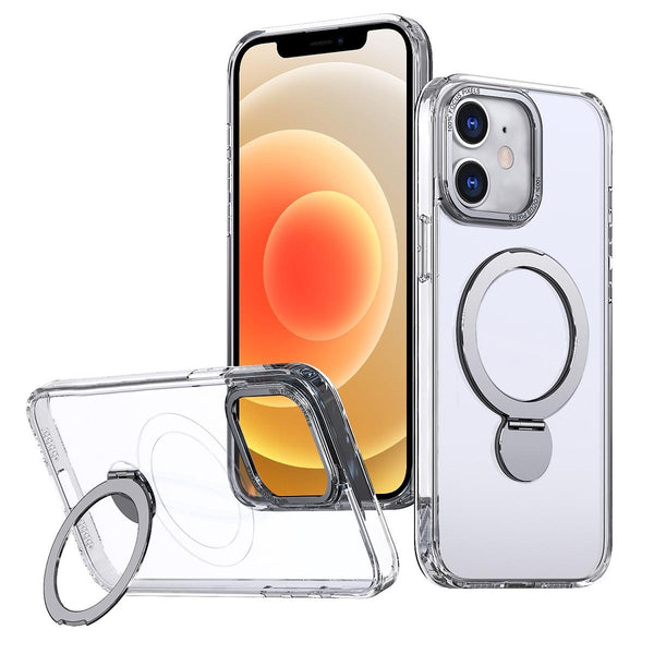 For iPhone 12 Wing Series Gen2 MagSafe Metal Ring Holder Phone Case(Transparent)