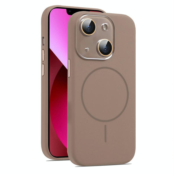 For iPhone 13 AG Fine Hole Liquid Silicone MagSafe Magnetic Phone Case(Brown)