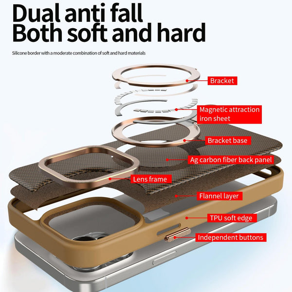 For iPhone 13 Carbon Fiber MagSafe Holder Phone Case(Black)